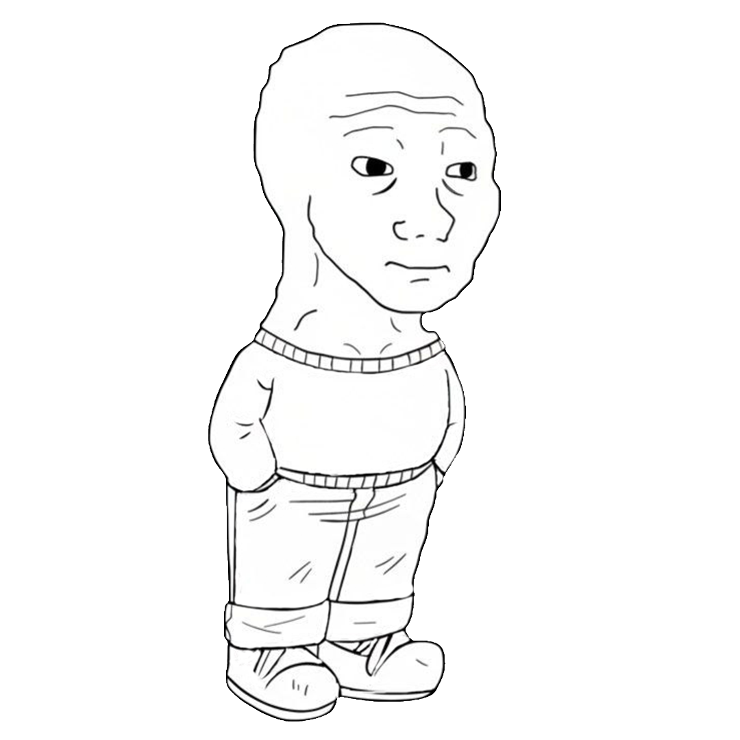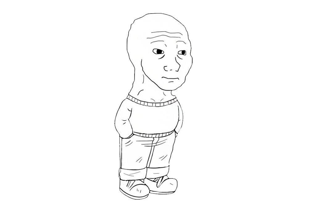 The character now widely known as Wojak actually began online life under the name Feels Guy. Early imageboard users called him that because his blank, melancholic face perfectly captured the expression behind common phrases like “that feel when…” or “tfw no gf”. Before the meme expanded into countless variants, he was simply the figure representing raw, honest emotion.